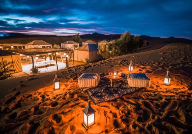 - Overnight at the camp in Erg Chigaga (Private tent ) with shared bathrooms and showers.
